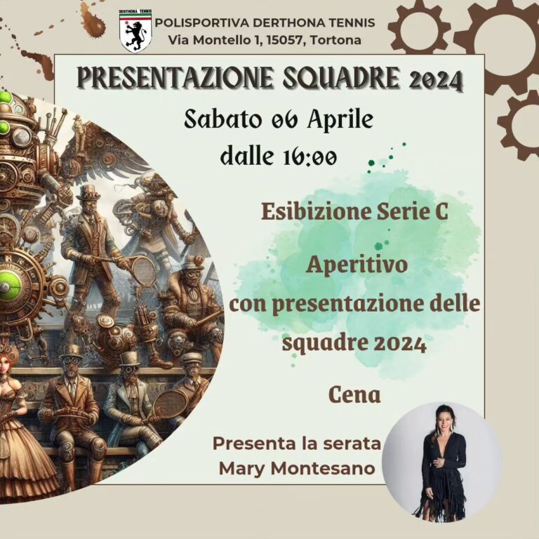 Il Derthona Tennis Club è entusiasta di invitare tutti alla grande festa per celebrare i suoi 60 anni di attività, che si terrà sabato 21