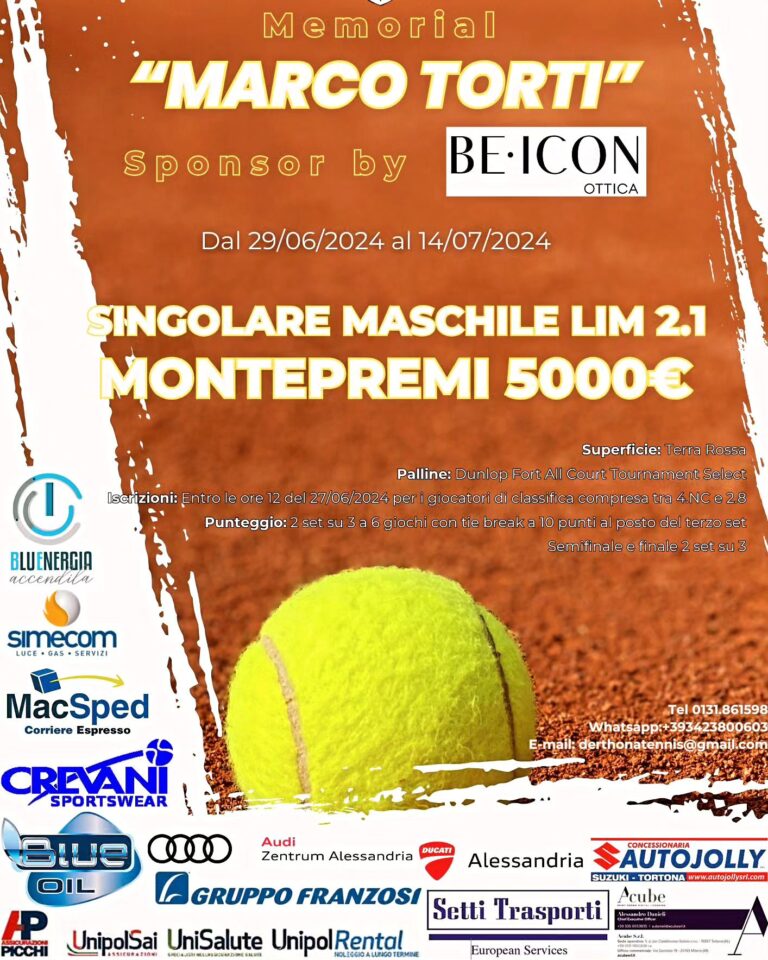 🎾 5° Memorial “Marco Torti” – Derthona Tennis 🎾 📅 Dal 27 giugno al 14 luglio 2025 📍 Derthona Tennis – Via Montello 1, Tortona