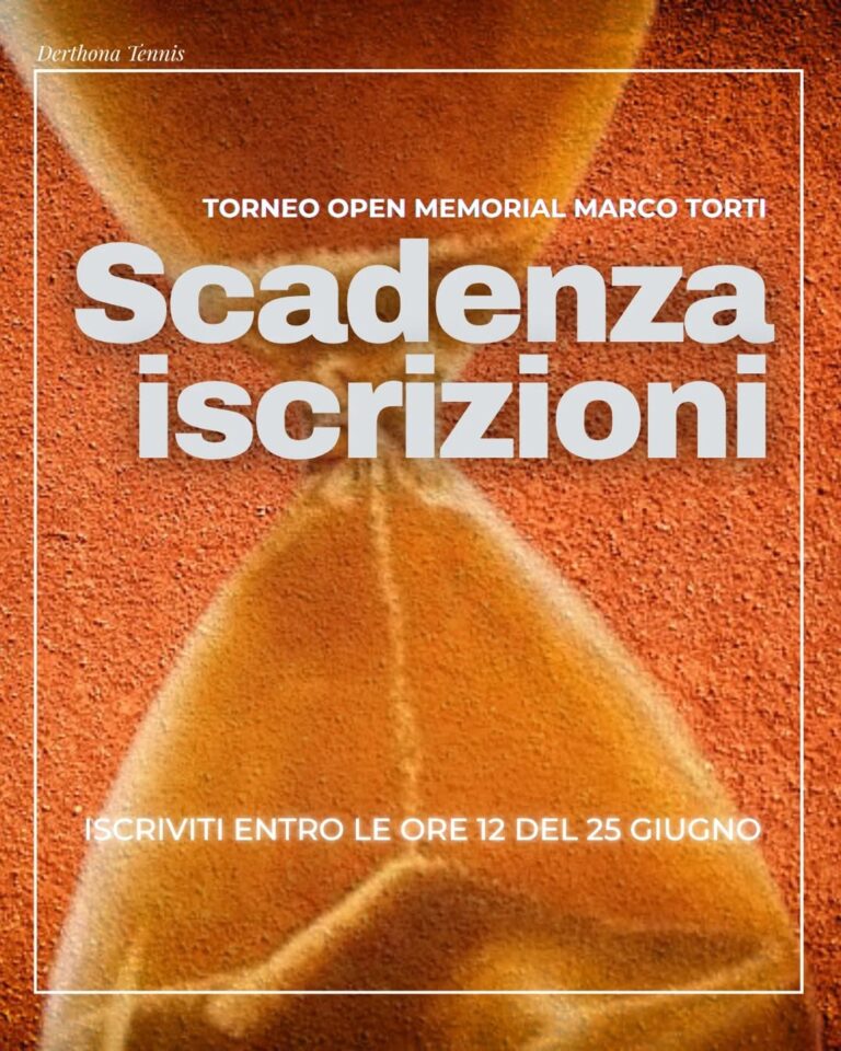 ⏳ Ultime ore per iscriversi al Torneo Open Memorial Marco Torti! ⚠️La scadenza è fissata per le ore 12:00 del 25 giugno. 📍 Derthona Tennis