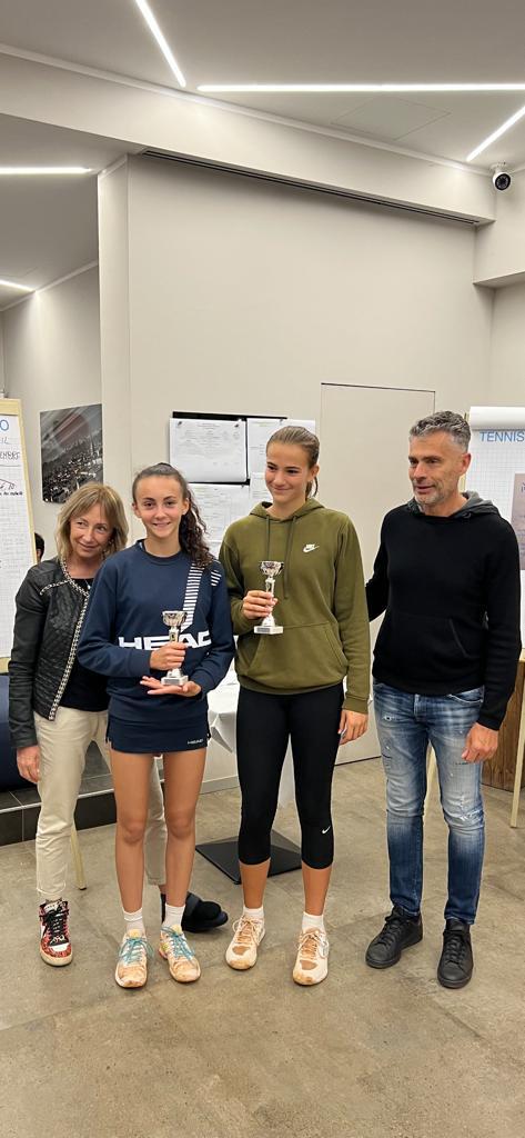 Contemporaneamente era iscritta anche nella specialità del doppio in coppia con Camilla Falco (3.2 Cuneese). Forti della testa di serie numero uno eliminano in semifinale Aurora Solio (3.3 Villaforte) e Sabrina Jeredii (3.5 Alessandra) per 6/3 6/2 per poi alzare il trofeo nell’atto conclusivo contro Eloise Vallet affiancata da Alessia Gervasio (3.3 Verde Lauro Fiorito) per 6/2 6/4.