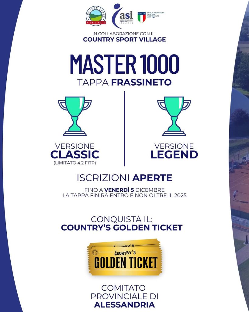 🎾 Nuova tappa del nostro Master 1000! Le iscrizioni sono aperte fino a venerdì 5 Dicembre! 📌 Tappa Frassineto Si gioch…