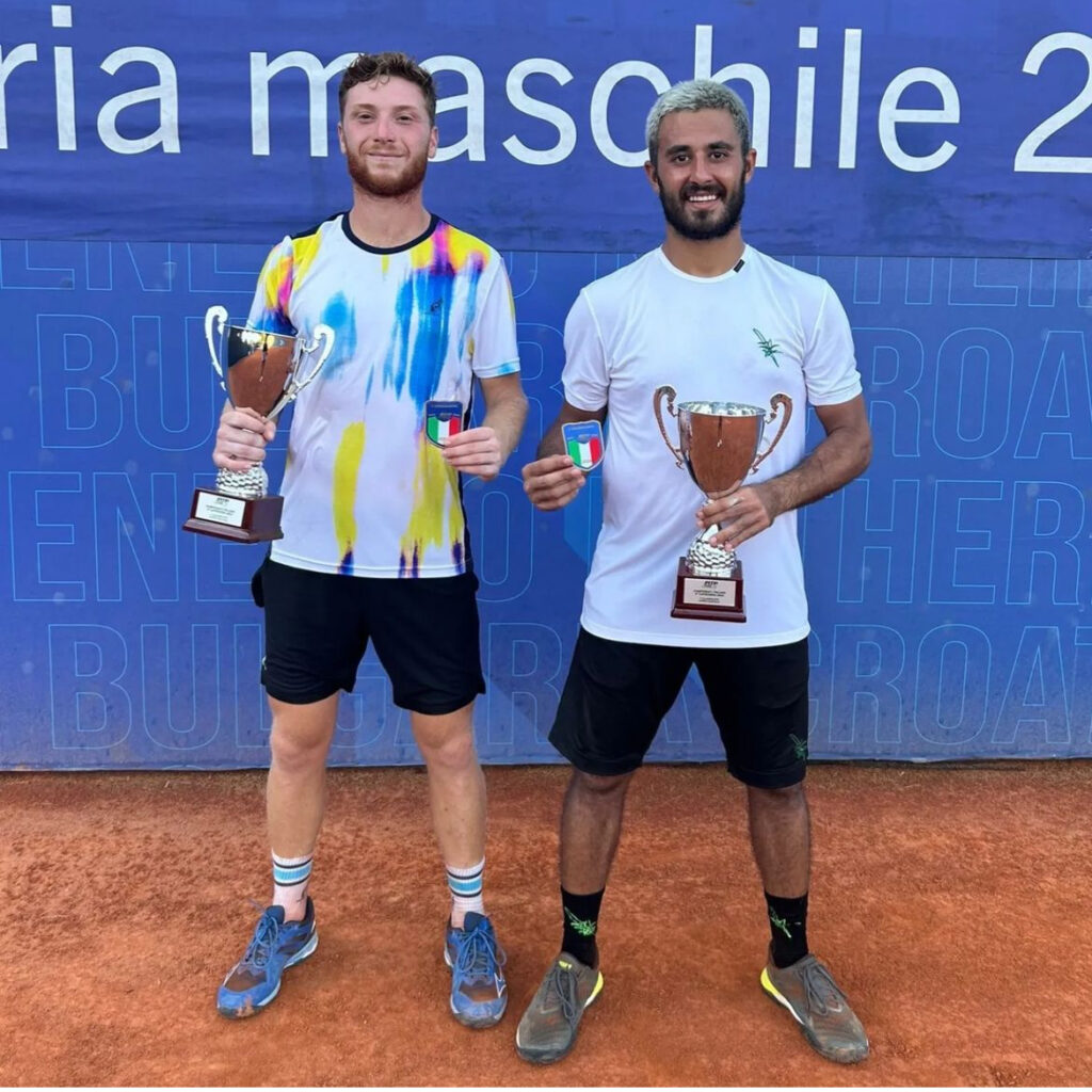 I meriti di questo importante successo sono da dividere in egual misura con il suo compagno Alessandro Ingarao (2.1 TC Match-Ball Siracusa). Il 25enne siciliano, vincitore anche della competizione in singolare, è uno dei giocatori più navigati e vincenti non solo ai livello dei tornei open nazionali, ma proprio per quanto riguarda i campionati italiani poichè ha confermato i successi conseguiti sia nel 2022 che nel 2023. Il duo siculo-piemontese, pur non avendo mai giocato assieme, ha dimostrato un ottimo affiatamento riuscendosi a completare a vicenda grazie alla solidità da fondocampo di Biondolillo e le abilità a rete di Ingarao e divertendosi sempre in campo. E’ stato un dominio assoluto durante tutta la settimana in quanto non sono mai stati sotto di un game in nessuna partita. Infatti nel match d’esordio hanno regolato gli under 18 del circolo ospitante Samuele Porcu (2.7) e Mauro Spanu (2.7) per 6/3 6/0. Poi ai quarti di finale hanno rifilato un eloquente “doppio bagel” a Mattia Vergoni (2.6 CT Gaeta) e Gianmarco Troiano (2.6 CT Eur). Quindi approdati in semifinale, forse nel match che si è rivelato più complicato, hanno estromesso il forte duo formato da Nicola Ghedin (2.3 Tennis Palladio ed ex n.450 ATP) e Tommaso Gabrieli (2.2 Tennis Bassano ed ex n.897 ATP) con un duplice 6/3. Infine nell’atto conclusivo della manifestazione Biondolillo-Ingarao hanno surclassato la coppia prima testa di serie formata da Filippo Alberti (2.2 CT Giotto) e Stefano Baldoni (2.1 CT Giotto ed ex n.636 ATP) in una finale a senso unico vinta per 6/3 6/1.