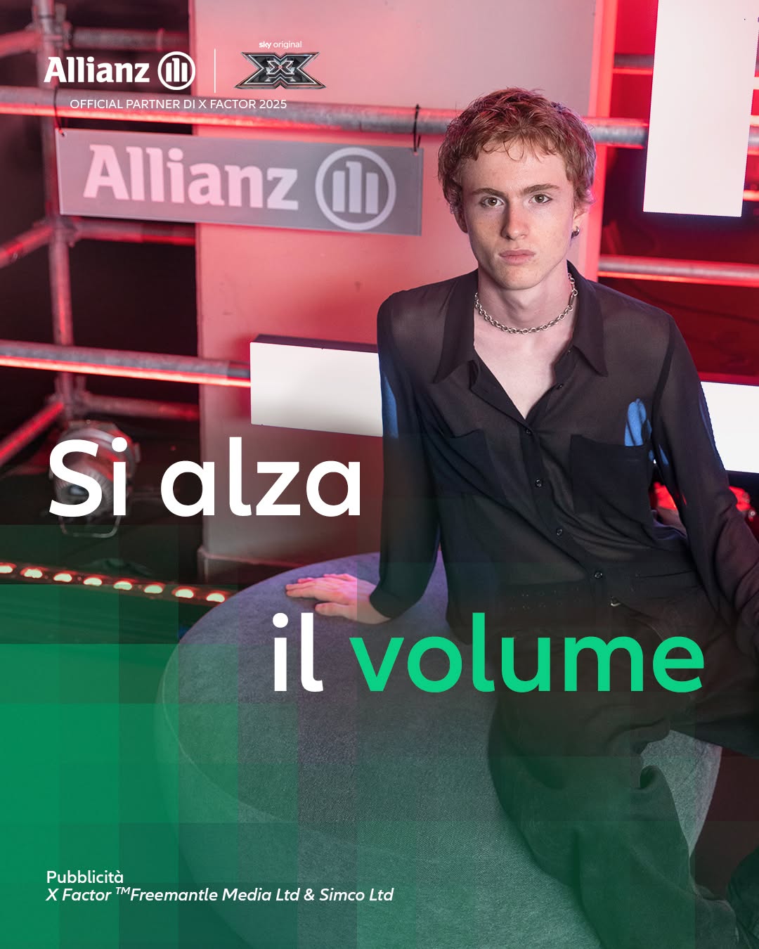 Messaggio pubblicitario con finalità promozionale. X Factor FremantleMedia Ltd & Simco Ltd. Concorso “Allianz X Factor 2025” valido dal 18/09/2025 al 12/11/2025. Valore montepremi € 16.200 IVA inclusa. Regolamento completo sul sito allianzxfactor2025.it.