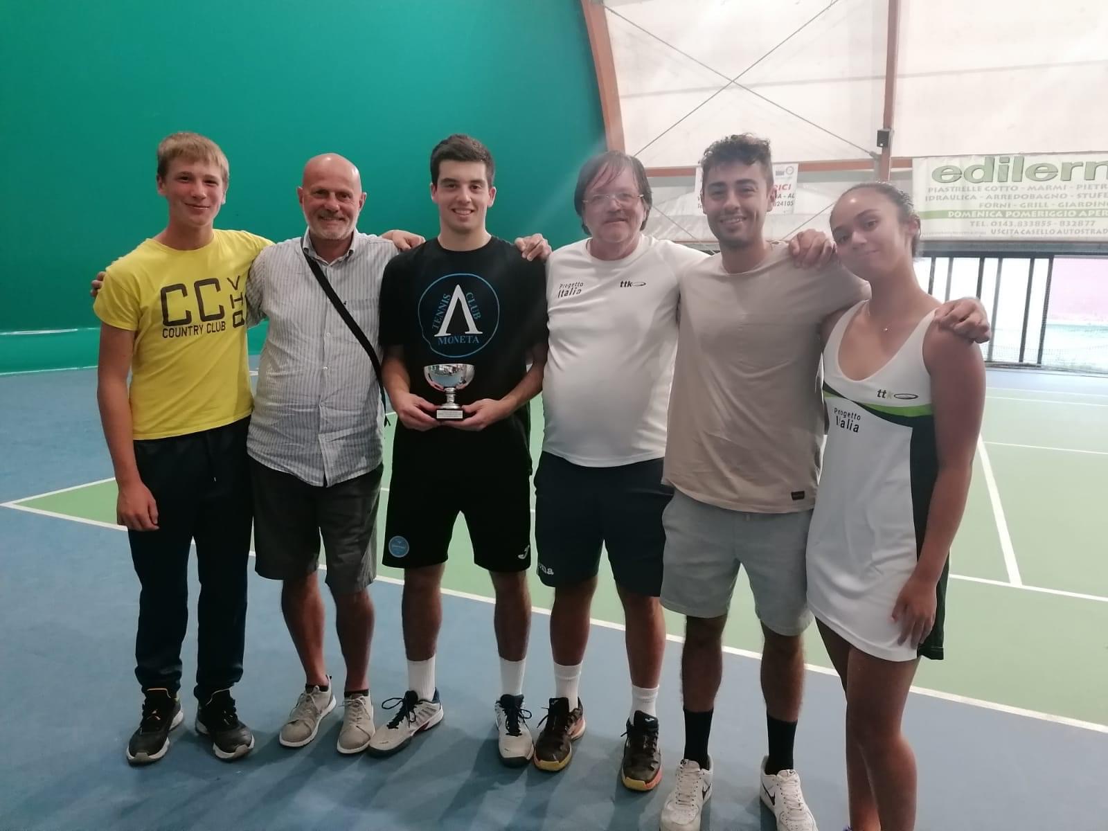 Nel singolare maschile, con 36 partecipanti, i pronostici della vigilia sono stati rispettati con il trionfo della prima testa di serie Luigi Corrias (2.5 TC Moneta 2001), di chiare origini sarde, che ha sbaragliato la concorrenza giocando un tennis di qualità che ben si sposa sulle superfici veloci. Partito direttamente dalla semifinale ha sfidato dapprima Luca Turco (3.2 Stecat). L’istruttore acquese, con un passato da 2.7, ha espresso un tennis di alto livello come non si vedeva da ormai qualche anno prendendosi lo scalpo di eliminare alcuni giocatori ben quotati e con una classifica superiore alla sua. Corrias però non si è fatto intimorire giocando con grande attenzione ed intelligenza i punti importanti e riuscendo a portare a casa il match con un doppio 6/4. In finale ha incrociato la racchetta dell’idolo di casa Filippo Apolito (2.6 Derthona), nonchè seconda testa di seria, dando vita ad un bellissimo incontro che ha appassionato il pubblico corso in massa per sostenere il proprio compaesano. Nel primo set la tensione è palpabile in Apolito e Corrias vince la frazione con eloquente 6/0 frutto anche di un tennis che rasenta la perfezione. Al contrario il secondo set è stato giocato punto su punto con break da ambo le parti e giunti al tiebreak la maggior freddezza di Corrias è stata determinante chiudendo con un bel vincente.
