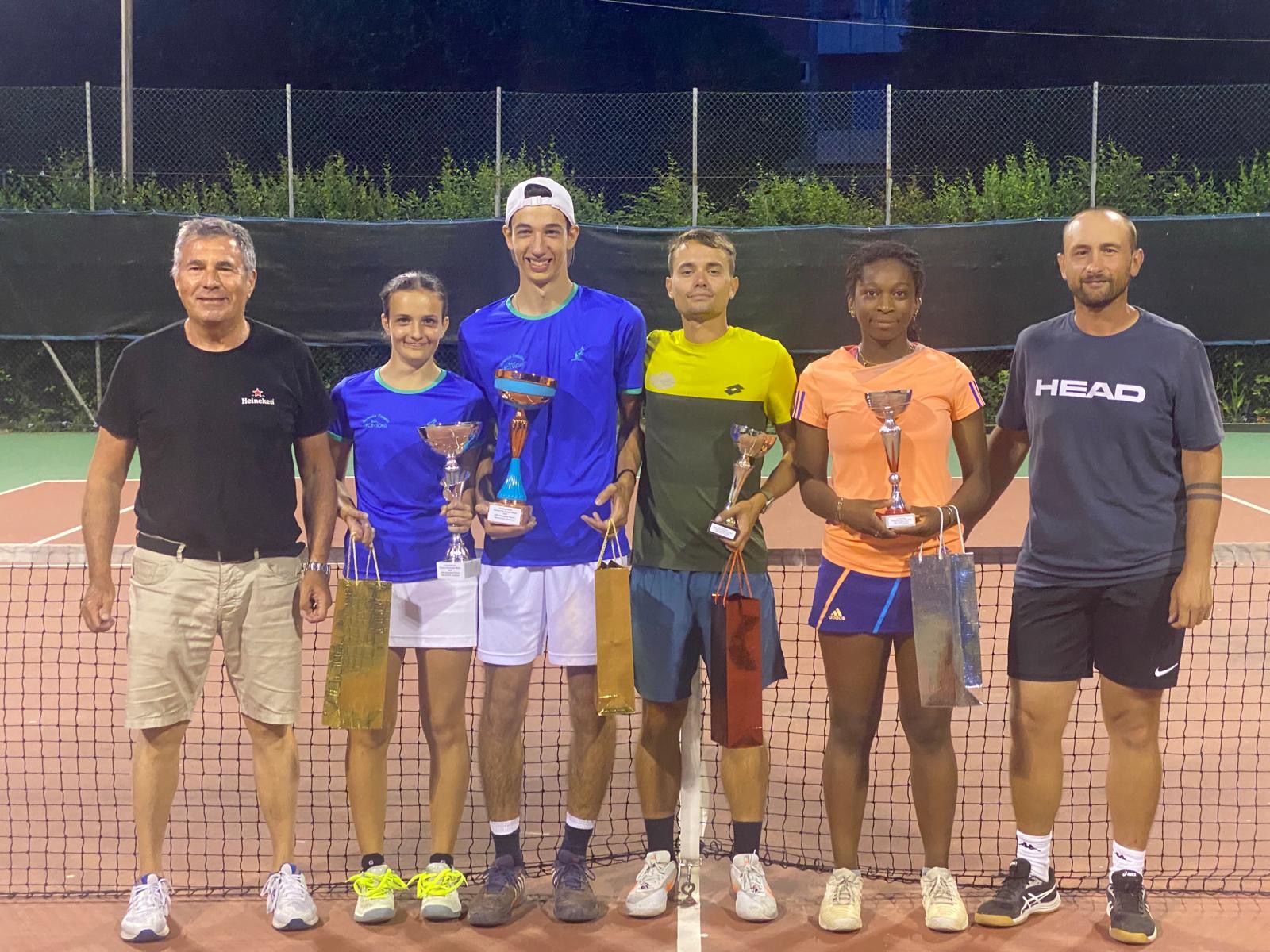 Infine il doppio misto, con 4 coppie ai nastri di partenza, non ha riservato grossi sorprese con i favoriti Fabio Boscagli (3.1 Canottieri Nino Bixio) e Martina Giovanelli (3.3 Canottieri Nino Bixio) che hanno vinto la competizione. La coppia piacentina ha dimostrato un grande affiatamento ed attitudine in questa specialità seppur poco praticata. In entrambe le due partite la coppia è scesa in campo agguerrita e ben concentrata senza farsi distrarre. In finale il duo Boscagli-Giovanelli ha vinto contro i ben noti Stefano Merlo ed Esther Oke per 6/2 6/4.