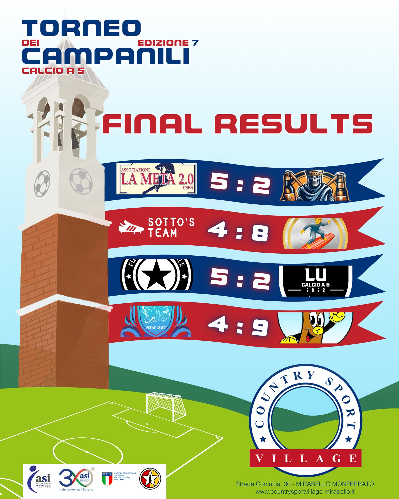 New Art 4-9 Oratorio Campanone Appuntamento per martedì 4 e mercoledì 5 per la seconda giornata dei gironi 🏆 ⚽️ STAY COUNTRY, STAY FOOLISH! ⚽️